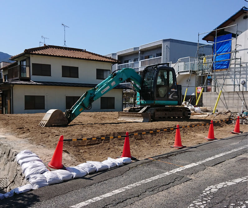 建物を解体し、化粧真砂土をまいて、境界を明確にした商品土地に仕上げることが早い売却へとつながります。