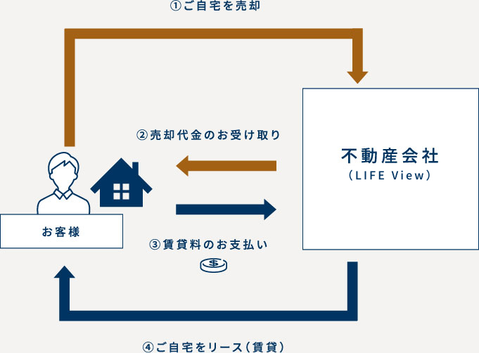 リースバックは、自宅を売却後そのまま賃貸借する不動産のお取引です。