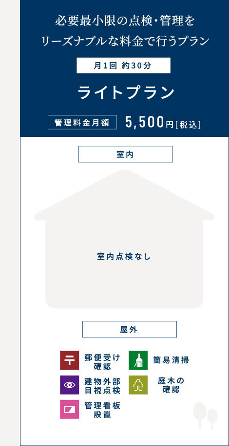 定期的な換気、通水、簡易清掃、ポストの管理や庭木の状態管理をすることで、資産価値を維持させましょう。当社は、安心と信頼の空き家管理の全国ネット「日本空き家サポート」に、加盟し「空き家サポーター」を務めています。